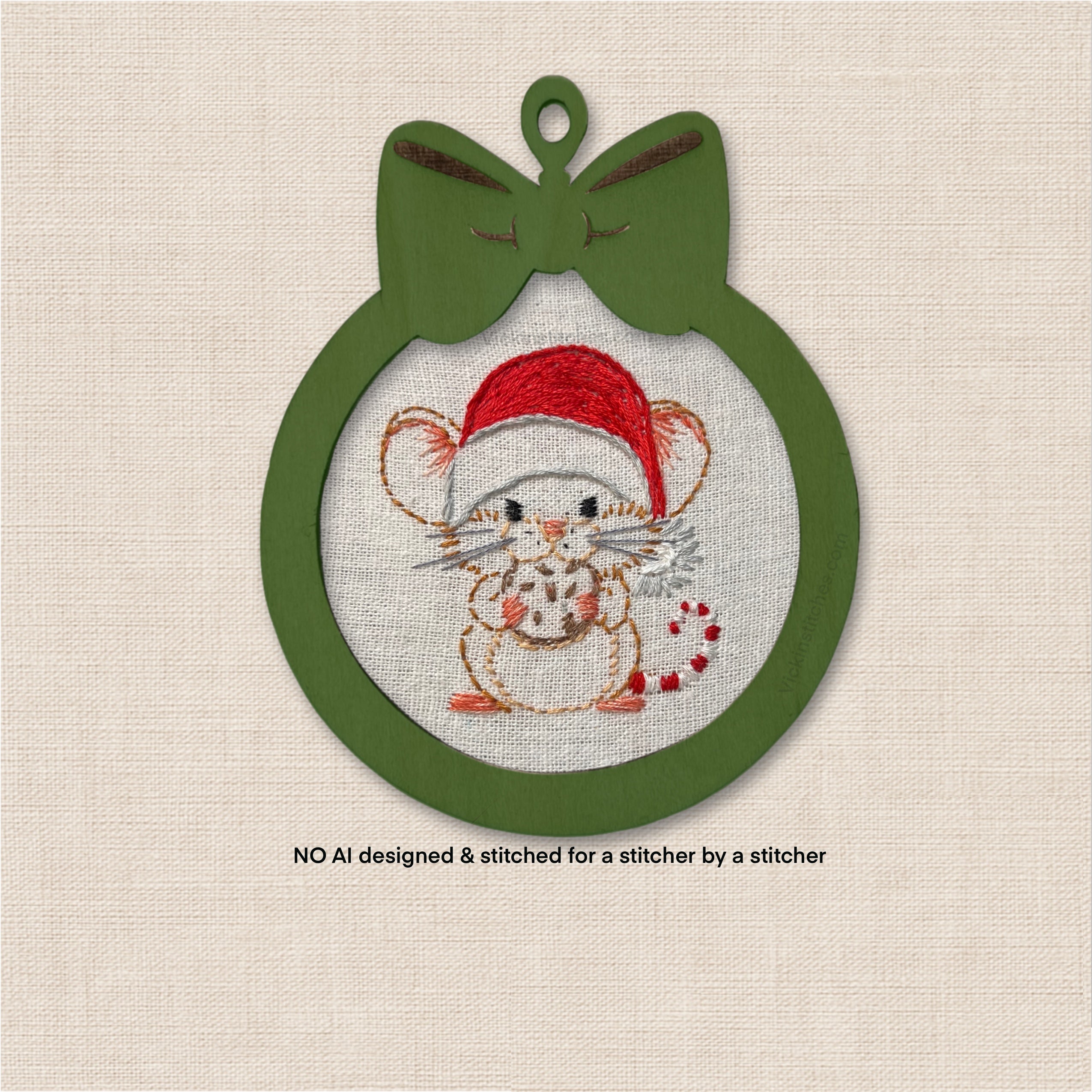 • Christmas Mouse Ornament Embroidery Kit – 3 Inch Mini Holiday Stitch K