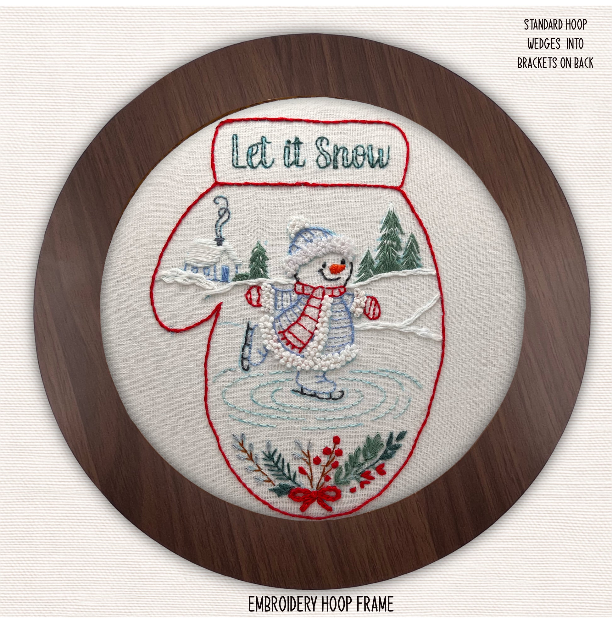 Let It Snow Embroidery Kit | Ice Skate Snowman Stitch | Christmas Décor