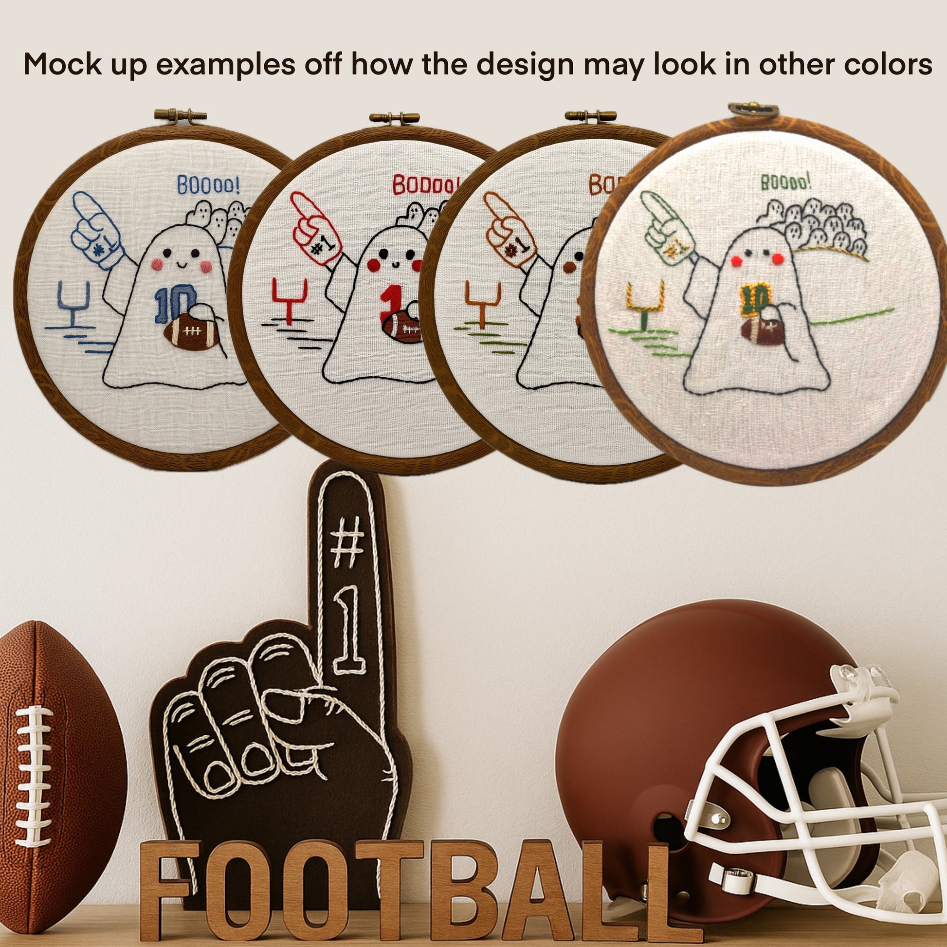 6β Ghost Football Fan Embroidery Kit β Beginner Halloween Hand Stitch Pattern