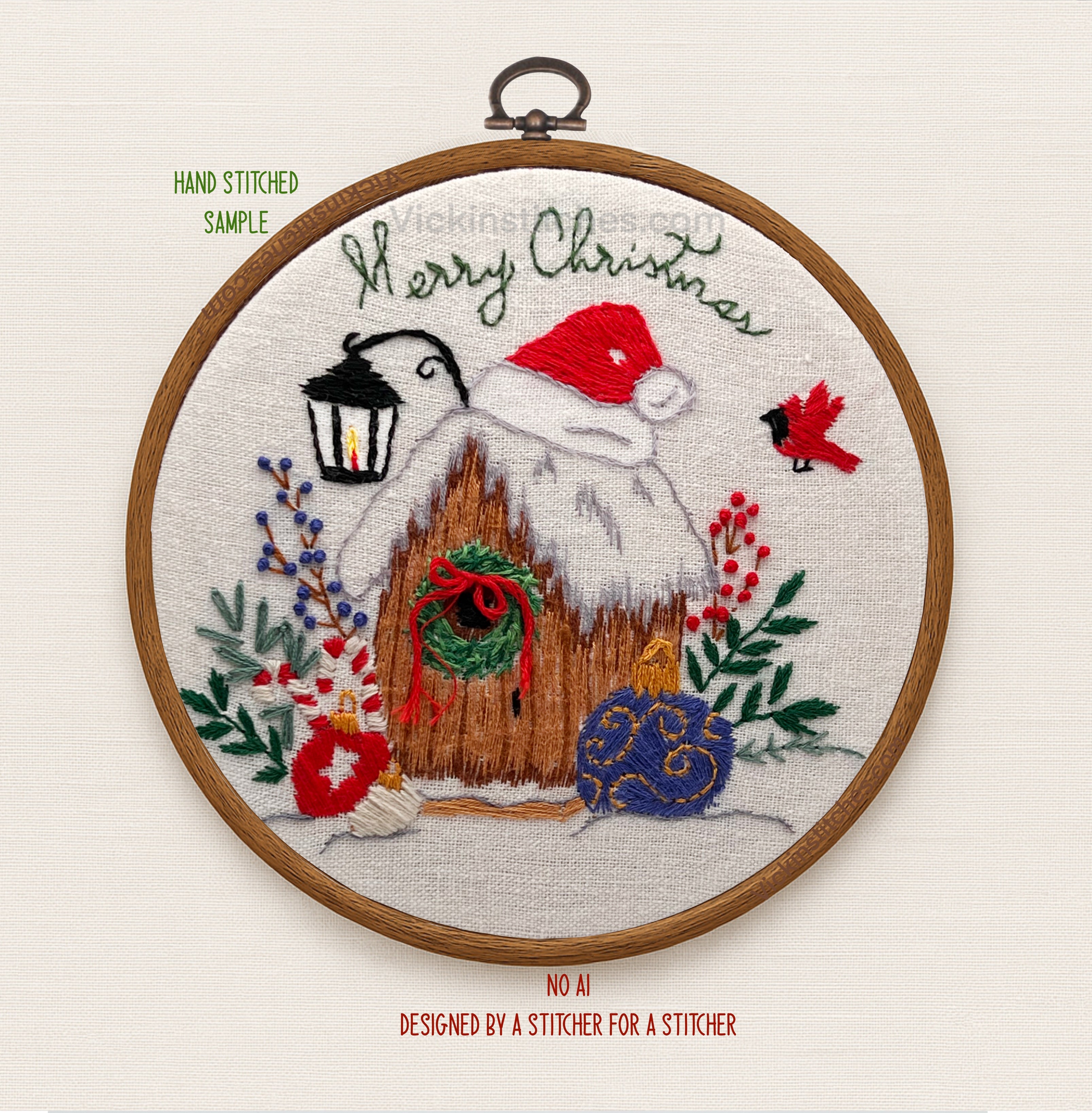 - Merry Christmas Embroidery Kit | Cardinal birdhouse Design