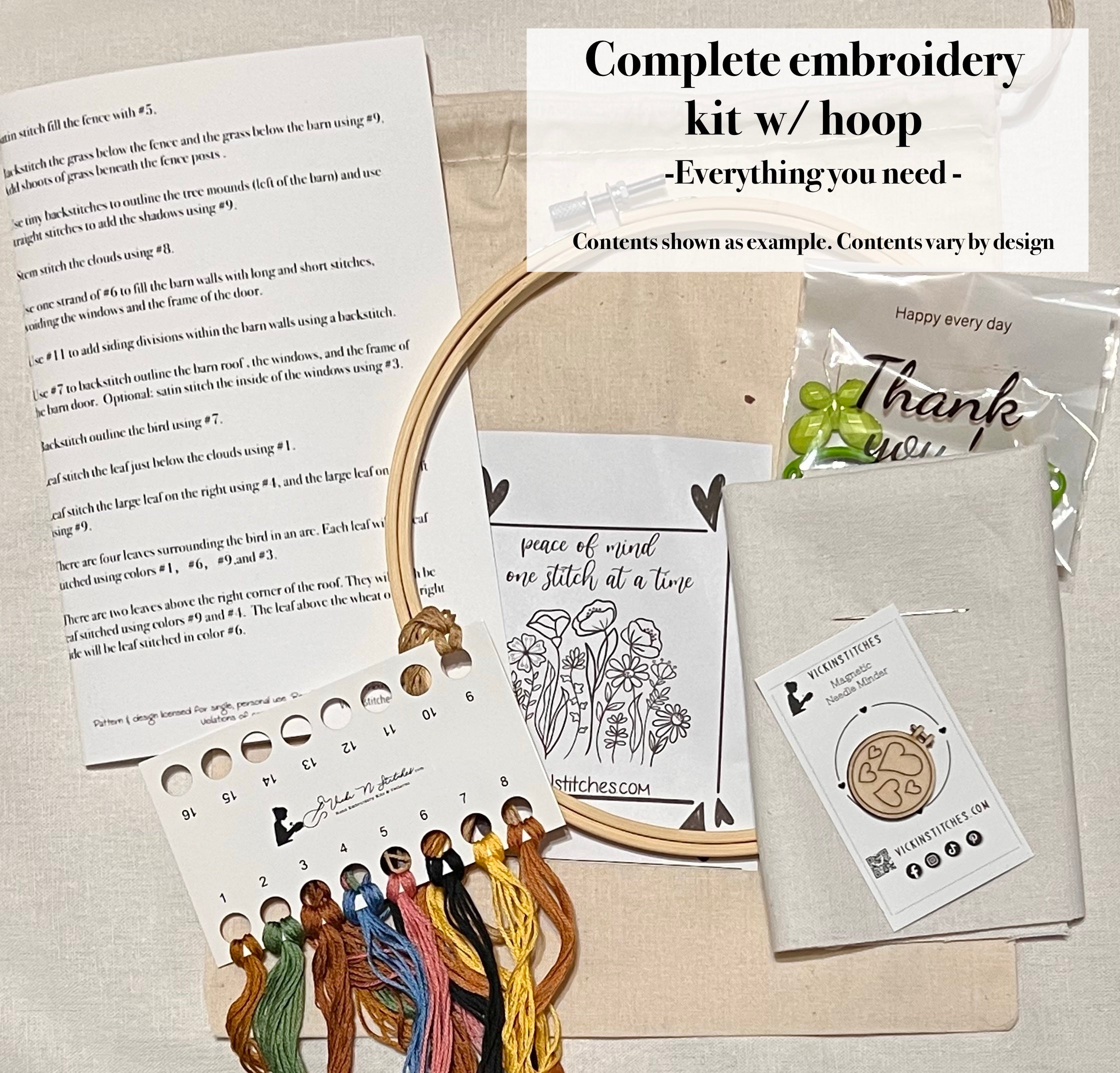 • 🌼 Full (No Hoop): Fabric + instructions + needle + floss set